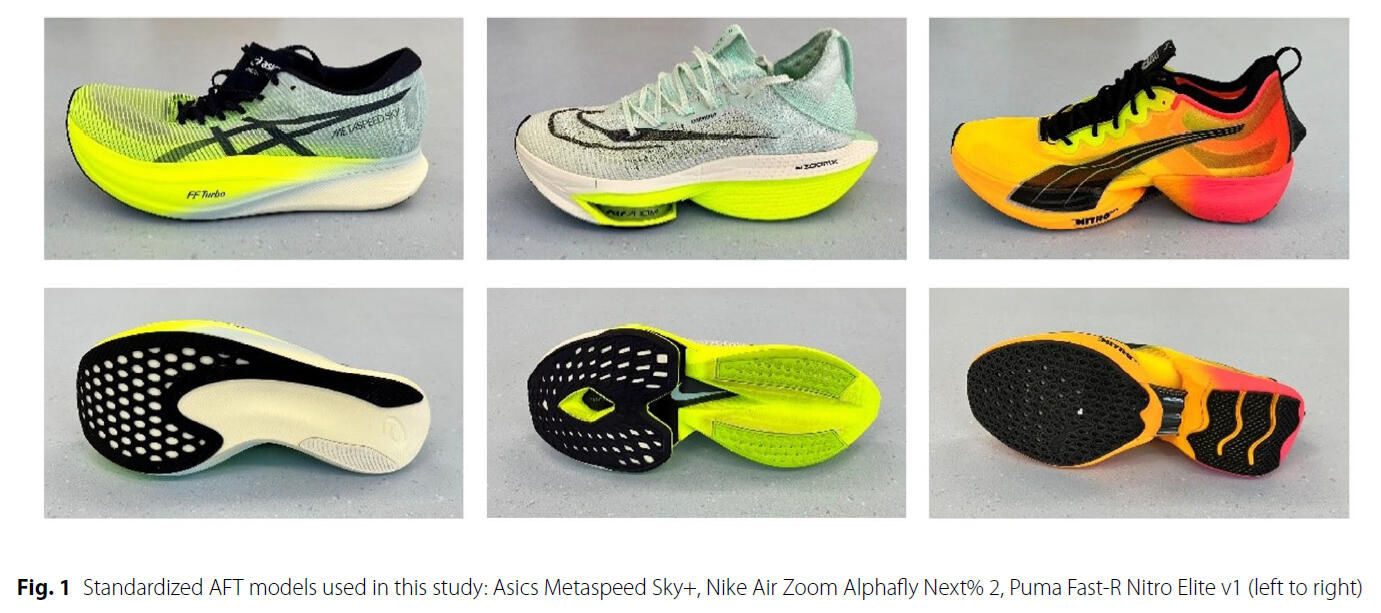 In our new study we investigated how biomechanical factors influence differences in running economy when athletes use various advanced footwear technologies (AFT). In a controlled crossover experiment, trained long-distance runners tested three high-performance shoe models while their energy expenditure and movement patterns were analyzed.The results showed that shorter ground contact time was consistently associated with improved running economy, meaning runners used less energy at the same speed. However, no single shoe model proved superior overall, highlighting that performance benefits depend on the interaction between an individual runner’s biomechanics and the specific footwear.Overall, the findings suggest that optimizing running performance requires personalized shoe selection rather than relying on one universally “best” model.