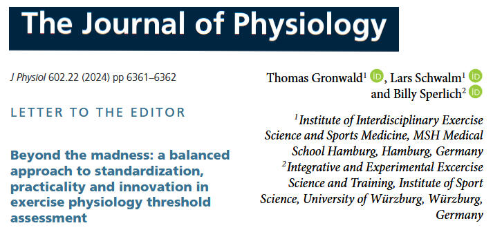 In a few comments to a recent perspective article we discussed the dilemma of standardizing exercise physiology thresholds and proposed a balanced approach to standardization, practicality and innovation in exercise physiology threshold assessment. Unfortunately, both full texts are not available free of charge, but can be requested via Research Gate.