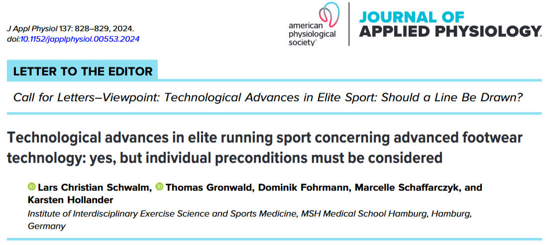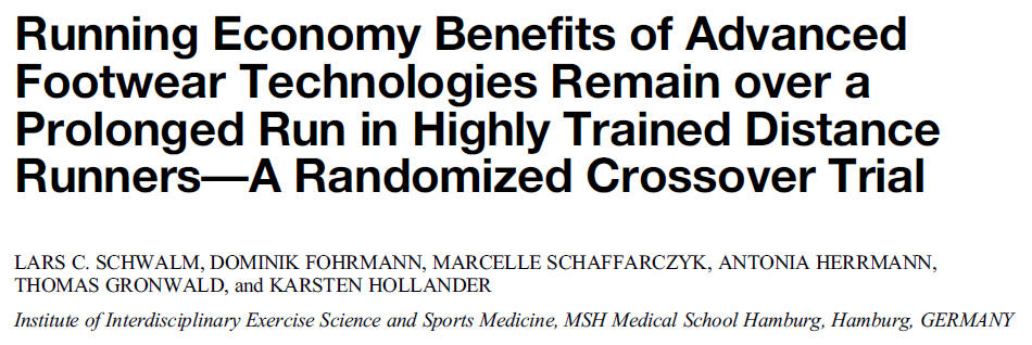 In this study lead by Dr. Lars Schwalm and published in the prestigious journal MSSE we observed running economy (RE) benefits of advanced footwear technologies (AFTs). The state of research exposed RE improvements in AFTs during short running bouts, whereas performance-enhancing effects may be greater over longer distances. Therefore, the aim was to compare RE and biomechanics during a 90-min run between AFTs and traditional shoes in highly trained distance runners. There were no differences between shoe conditions in deterioration of RE during the 90-min run, but AFTs maintained their beneficial properties in RE over time and therefore are probably a good choice for long distances. The full text can be requested via Research Gate.