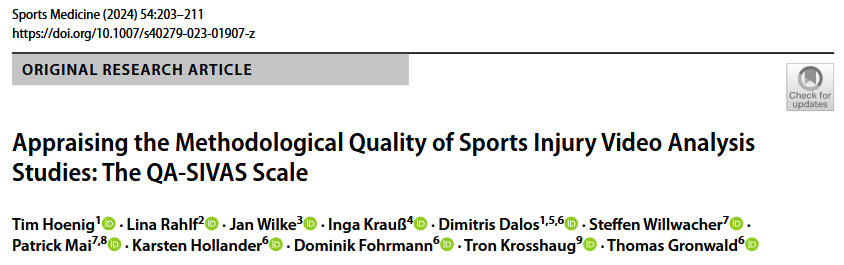 Referring to injury pattern analyses based on video data, we noticed that there are no standards for the methodological design of such studies or for evaluating the study quality for e.g., review articles. We therefore decided to develop the QA-SIVAS scale in 2024 with precisely this aim in mind. The rating scale is already in regular use for evaluating studies and for the methodological design of video analyses in the sporting context.