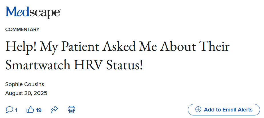 Much has already been said about the application of heart rate variability for monitoring approaches, ... but it can't do any harm to repeat certain important things in a different context; here in an interview for Medscape together with Prof. Cailbhe Doherty.The original interview was much longer; so I put it below the image and link.