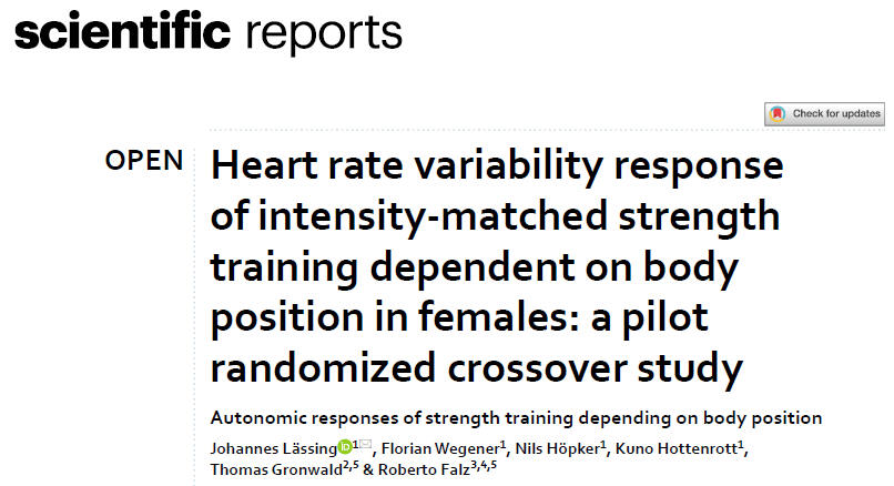 In our new study we evaluated autonomic responses of strength training depending on body position. Squat movement in a Smith machine led to increased vagal withdrawal both at rest and after exercise compared to seated leg press, probably due to orthostatic stress. While exercising, the differences in autonomic regulation are less noticeable.