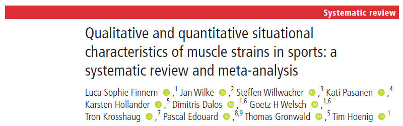 Indirect and non-contact muscle injuries, often referred to as muscle strains, occur in specific sporting scenarios (injury situations). Multiple dimensions of situational characteristics, including contact mechanisms, joint positions or neuromuscular force production, have been investigated to understand causation of muscle injuries. Despite the implementation of preventive measures, clinicians continue to face challenges in reducing the incidence of muscle injuries in sports.In our recent systematic review and meta-analysis published in the British Journal of Sports Medicine muscle injury patterns were characterised from 728 video-detected muscle injuries in sports. Qualitative and quantitative situational characteristics (e.g., injury contact mechanism, joint positions at injury time) of hamstring, adductor, quadriceps and calf muscle injuries are described in detail. While general principles of muscle injury causation are applicable (e.g., high muscle activation while being at length during the assumed time of injury), certain injury patterns are more specific to particular injury locations and sports. Knowledge of the situational characteristics underlying muscle strains assists clinicians in accurate diagnosis and treatment decision-making. Future preventive approaches for muscle strains should be guided by a distinct understanding of injury causation. The full text can be requested via Research Gate.